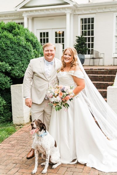 We offer wedding day care to ensure your puppy gets the cuddles, exercise and fresh air they need. Our experienced handlers will take your puppy where they want to go. We help with pre-ceremony photos and having your puppy near you because its a big day and they are a great comfort to us! We help with ceremony involvement; whether it be us or someone in the wedding party. We help with cocktail hour photos by getting their attention for the photographer.